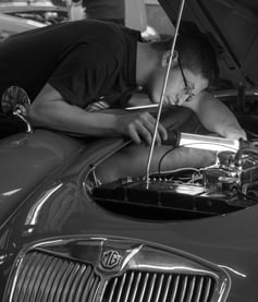 Eidg. dipl. Automechaniker, Geschäftsinhaber seit 1.6.2014. Stefan wurde das englische Oldtimerblut wahrlich in die Wiege gelegt. Schon als kleiner Junge schraubte er viel lieber rum, als auf dem Fussballfeld am Ball nachzujagen. Er lebt für die Oldtimer mit all seiner Leidenschaft und sein ganzer Stolz ist sein eigens vollbrachtes Kunstwerk: sein total restauriertes MG A Coupé. Es legte den Grundstein für das heutige British Inter Cars AG.