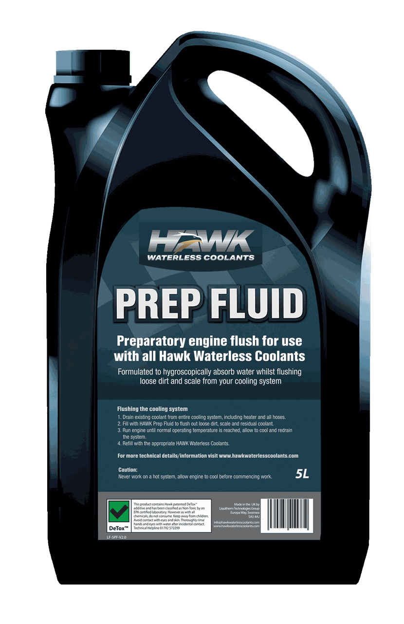DE - Das Prep-Reinigungsfluid ist immer dann notwendig, wenn das Kühlsystem bereits mit Wasser gefüllt worden ist. Dieses Fluid ist zur Reinigung des Kühlsystems und wird vor dem Einfüllen des eigentlichen Kühlmittels benutzt. Das Prep-Reinigungsfluid ist hygroskopisch und bindet das restliche Wasser im System und schwemmt es aus. Es wird angewendet nachdem das Wasser bestmöglichst aus dem System entfernt wurde. Sie füllen nach Entleerung das Kühlsystem vollständig mit dem Prep-Reinigungsfluid auf, um jegliche Wasserrückstände auszuleiten. Erst nach dieser Massnahme haben Sie den maximalen Nutzen von HAWK Waterless Coolants Kühlflüssigkeit. Achtung: lassen Sie den Motor mit aufgefüllten Prep-Reinigungsfluid betriebswarmlaufen (ca. 1 Stunde), bevor Sie das Prep-Reinigungsfluid wieder ablassen, um anschliessend das HAWK Waterless Coolants Kühlmittel einzufüllen.